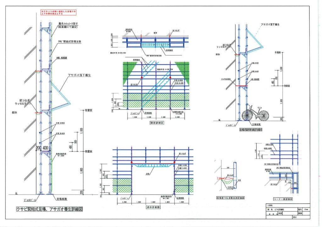 足場墜落防止、その後の点検などのための作図の重要性が求められています。